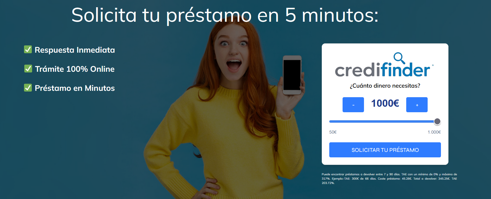 Solicita ahora tu préstamo rápido de hasta 1000€ en Credifinder